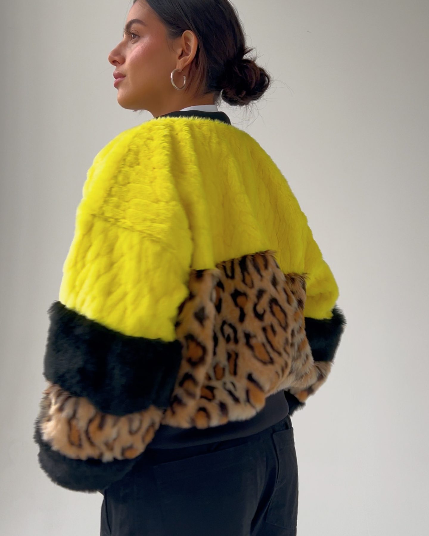 £190.00Beautiful handmade and one of a kind TDS cardigan. Luxurious cream faux fur with shearling sleeves and front pockets. The style is over-sized and comfy. Complete with front pockets, edged in fleece. Lined in white satin and scuba edging to complete the piece.